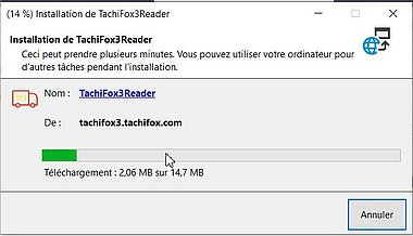 - Lorsque tous les fichiers sont téléchargés, les étapes 3. et 4. doivent être exécutées à nouveau.Ensuite, TachiFox Reader démarre automatiquement. Les données de connexion sont les mêmes que celles du TachiFox Web.