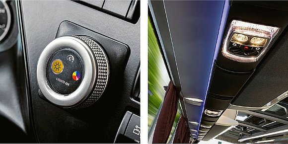 Nous nous habituons rapidement à la MirrorCam et à ses grands écrans intégrés dans les montants avant grâce à plusieurs trajets effectués avec des systèmes similaires. Lors des manœuvres, la vue aérienne offerte par le système de caméras à 360° est d’une aide précieuse. Elle s’affiche sur l’écran supplémentaire situé au-dessus du cockpit. Détail chic: grâce à une commande électronique, le frein de stationnement se desserre automatiquement au moment du démarrage. Il offre en outre une fonction de maintien intégrée. Pour cela, il suffit d’appuyer fortement sur la pédale de frein à l’arrêt, puis de retirer le pied de la pédale. Dès que l’on appuie à nouveau sur l’accélérateur, le frein se desserre automatiquement.