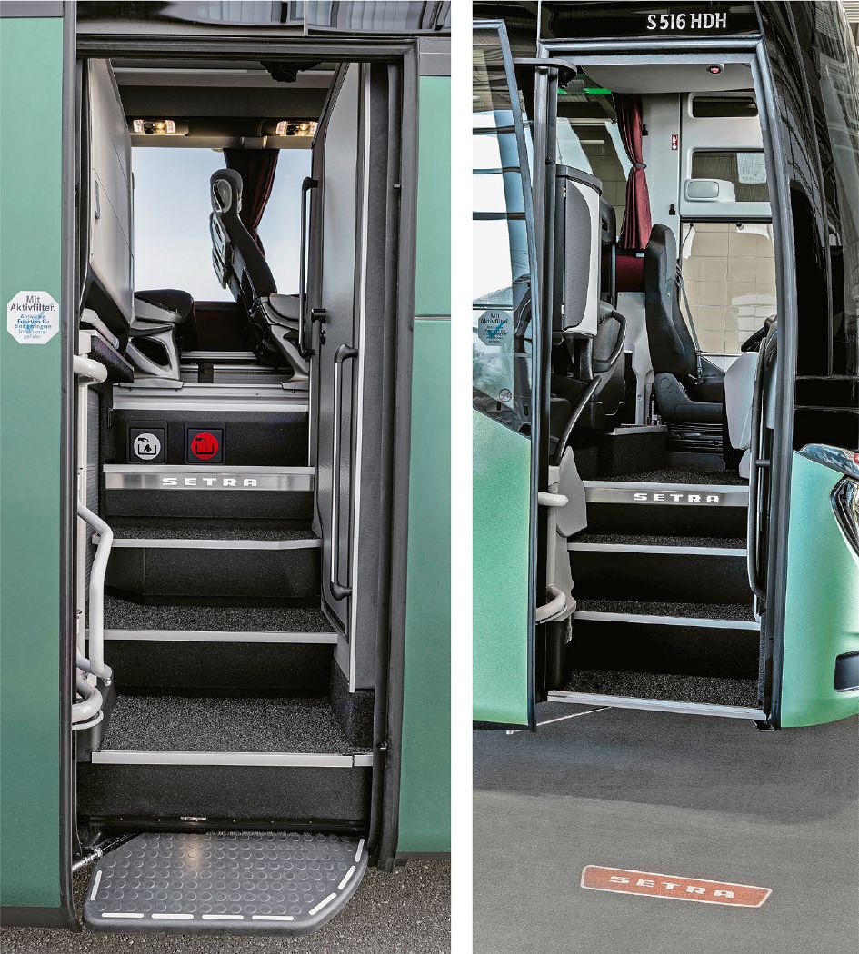 La gamme d’autocars Setra se décline en deux modèles distincts, le ComfortClass 500 et le TopClass 500, qui, comme on le sait, reposent sur la même technologie. Le ComfortClass, au design un peu plus sobre, est disponible en six versions à deux ou trois essieux, tandis que le TopClass est exclusivement proposé en version à trois essieux. Les deux gammes ont été profondément remaniées il y a quatre ans, modernisées sur le plan esthétique et nettement améliorées sur le plan technique. L’année dernière, la technologie a encore été améliorée et complétée, entre autres, par les caméras rétroviseurs MirrorCam et les tout derniers systèmes d’assistance.